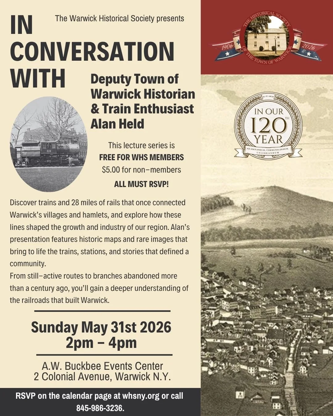 The Historical Society of the Town of Warwick, a certified 501(c)3 nonprofit, relies solely on the generosity of residents and businesses as no tax dollars are received. 100% of the money raised goes toward supporting our mission, through the educational programs we take into schools, lectures, workshops, performances and the preservation and restoration of our archival materials and 12 historic properties and grounds.