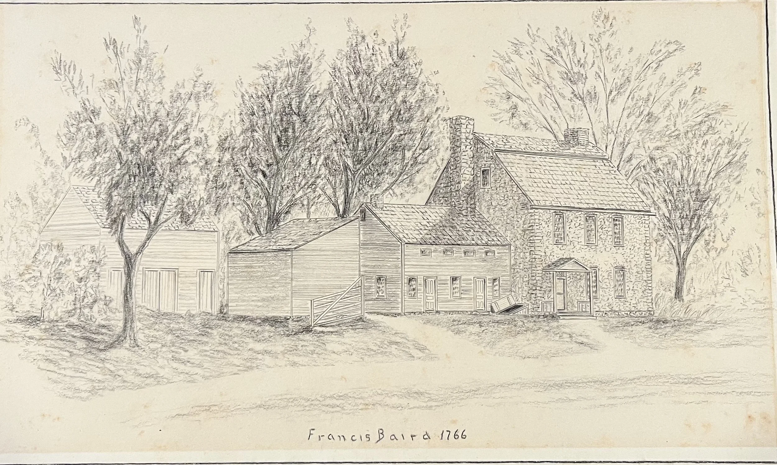 Townsend Sanford’s rendering from 1930 of original layout of the Baird homestead.