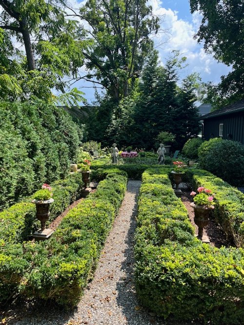 The Ketchum House Garden is an example of city planning. The formal garden, created on the limited ground space property of Federal houses, was popular at the turn of the 19th century. Picture books showed the revival of European travel and an interest in English and Italian planting as seen in this garden.