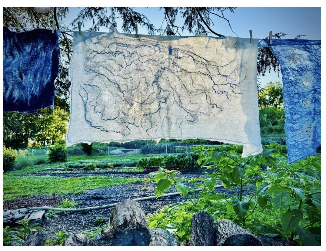 TORINO: I get wool from a few different places. I order a lot online. In 2024, I did an artist residency at the All One One All Farm in Goshen where they have Karakul sheep and I used their fiber. I learned about the entire process of how they raise their sheep. I helped with the sheep shearing. I delivered the wool to a processing mill. I was able to use the wool from the farm and I made wet felted sunflowers to hang on a wall. Every breed of sheep has different wool. The Karakul sheep have a coarse texture. It’s not something you would make a scarf out of but it’s perfect for a rug and or for decorative pieces. I do want to use as much local wool as I can. I am hoping in the future to use wool from Catskill Merino in Warwick.