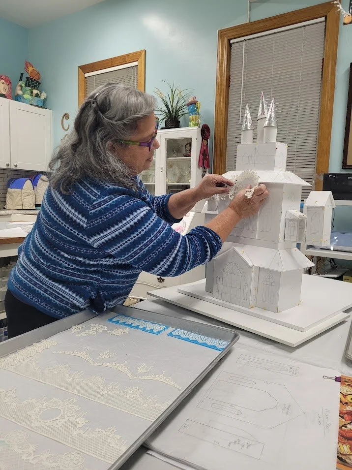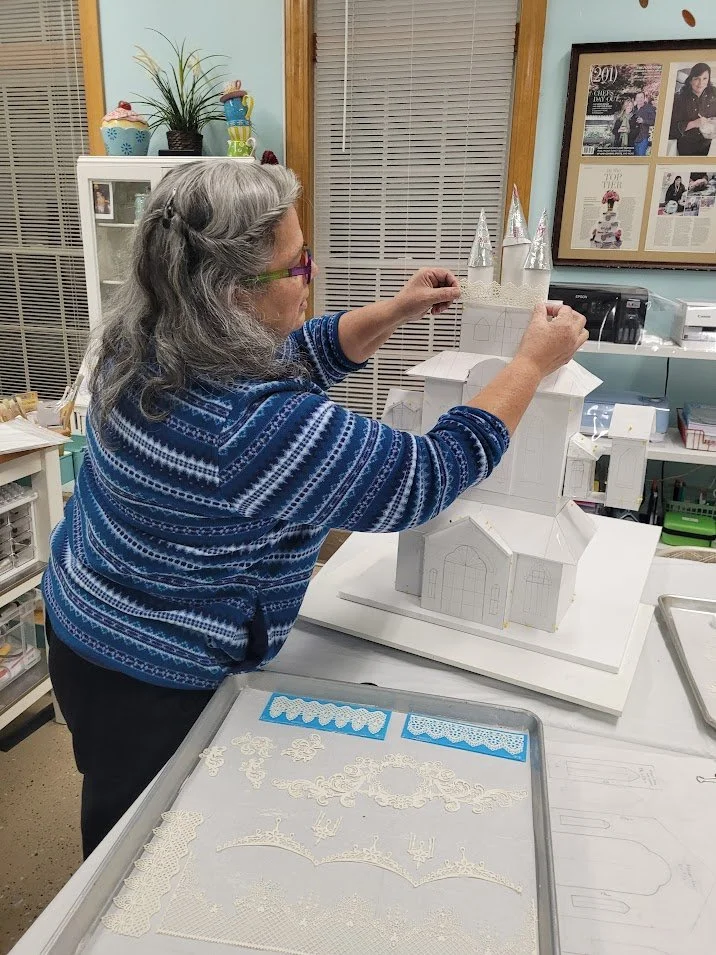 Vanessa working on the gingerbread creation to be auctioned off at the WHS Great Warwick Cookie Exchange on December 7th.